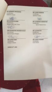 The statement is Signed by various coordinators, including MR EBISAN FENEMIGHO, MR FIDELIS ETE LORI, MR RICHARD ARUBI, and others, on March 31, 2026.