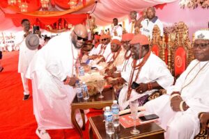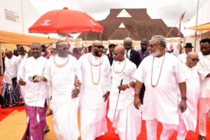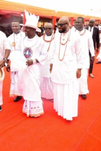In a grand and resplendent ceremony, HRM Oboro-Gbaraun II JP, Aketekpe, Agadagba, the revered Pere of the Ancient Gbaramatu Kingdom, conferred the esteemed title of ‘Ibetariwei’ on Senator representing Delta South Senatorial District, Joel- Onowakpo Thomas, marking a momentous occasion during the annual Amaseikumor Festival.